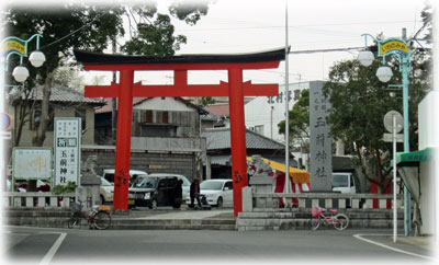 九十九里浜に向かい真東を向いているので道路や参道の向きとズレてます。