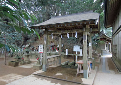 手水舎と神輿殿。