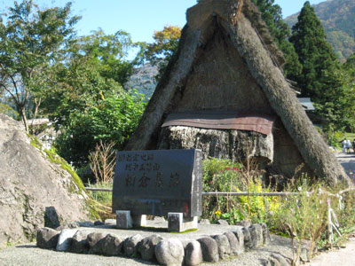 相倉地区が国の指定史跡となった記念に建てられた史跡指定記念碑で、相倉地区のほぼ中央にありました。