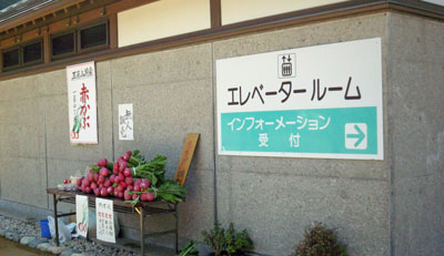 エレベータの前には無人販売の赤かぶが置いてありました。飛騨高山でも必ず見かける赤かぶです。