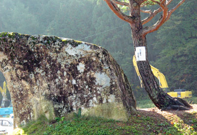 この度中部縦貫自動車道建設工事にかかり、この地に移設し遠い昔のロマンを偲ぶと共に「道の駅・ななもり」の証として永遠に語り継がれることを願うものです。』