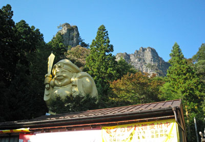 中之嶽神社は大国主命を祭っているので日本一の大きさの大黒様を作ったんだそうです。また、ここの大黒様は剣を持っている珍しい姿で、剣を持っている理由は、不動明王と大国主命が習合したという説や、中之嶽神社の神宝が剣だからという説があるそうです。
