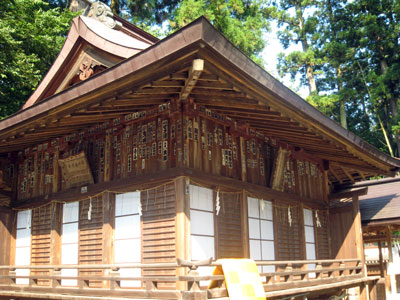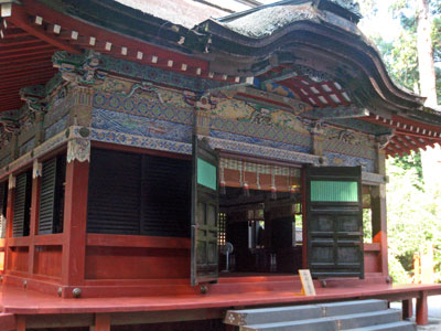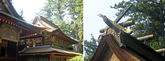 本殿の外見は春日造りですが内部が2階建てで神座は2階部分にあり「貫前造り」という貫前神社独特の社殿形式です。屋根正面の妻の部分には雷神の描かれた窓があり「雷神小窓」と言うそうです。