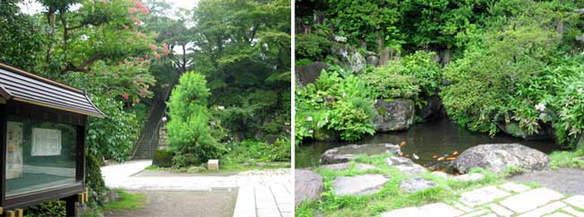 境内。右は放生池。