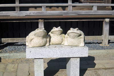 拝殿前の右側には3匹のカエルがいました。