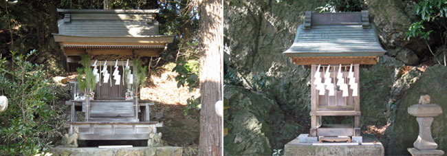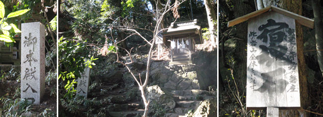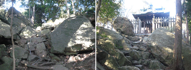 拝殿裏は天香香背男が封印されている岩山で、岩山全体を「宿魂石」と言い、登り口に大杉神社が鎮座していました。ここを登るの?とためらってしまう岩山ですが、地元の参拝者は結構登ってる様子?