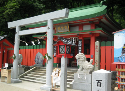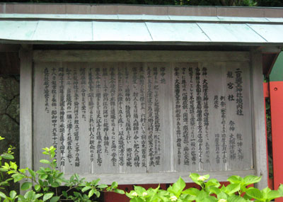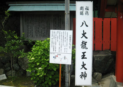 − 百度参りについて − 『 手水舎前の百度石より始まり、ゆっくり八の字に一周致します。(この一周により十周分の御利益が授かります)。元の百度石に戻り、白い石を裏返しますと、字が表に現れます。この方法で一周ごとに石を裏返し、十周致します。全て周り終えると百度参りした事となり、十個の石が裏返り、「八大龍王大神諸願成就」の文字が現れ、願いが成就されます。』 (案内板より)