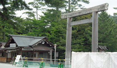 よくTVで見かける正面玄関の第一鳥居ですが、宇治橋の架け替え工事中で、この光景でした。