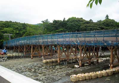 宇治橋は渡れないので仮橋から内宮へ。