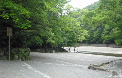 鳥居をくぐって右に行くと五十鈴川で、左に行くと正館に向かいます。