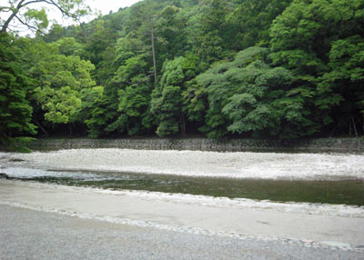五十鈴川には白い石がたくさんありました。この石を拾って神社の周囲に敷いてるそうです。