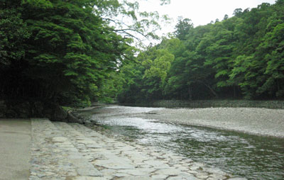五十鈴川で手を洗えるよう石畳の階段になっていました。この石畳は江戸時代に、第5代将軍綱吉の生母・桂昌院が寄進したものだそうです。