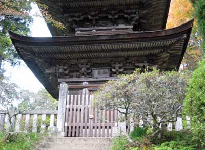 『 この塔は大正9年解体修理の際に発見された墨書に依り鎌倉末期の正慶二年天王寺流大工に依り建てられたことが明らかになった。見返りの塔の名のあるように全体の形が上品で美しい。特に初層の蟇股と塔の内部装飾は見事で我国三重塔中屈指の名作である。』