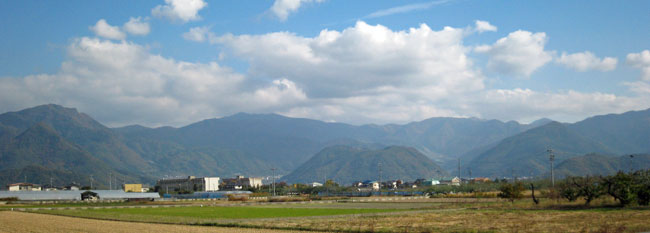 長野県長野市松代にある、ピラミッド山と言われている皆神山です(真ん中のプリン型)。