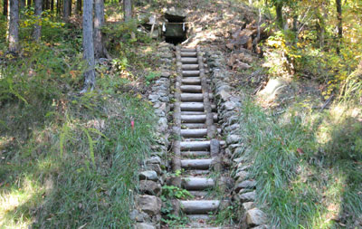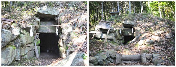 山道の途中にあり、気付かず通過してしまいそうな場所でした。階段を登って石室へ・・