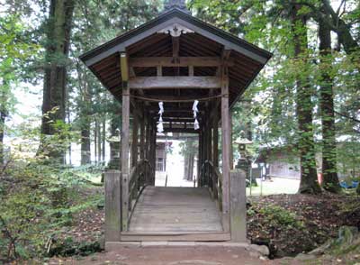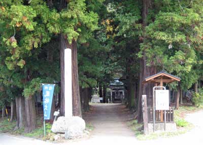 『 延喜式に載せられている信濃の名社。上田、小県地方のおける式内社五座の一で、奥社は塩野川の水源独鈷山にある。大宮または大明神とも称され、古来この地方の信仰の中心で、塩野北条氏、武田氏、真田氏等の統治者は常にこの神を厚く崇敬した。中でも永禄11年(1568)の武田信玄の祈願状や天正15年(1587)の真田昌幸(幸村の父)、の寄進状など有名なもので、何れも上田市の文化財に指定されている。かつては神宮寺も付属している大社であり、武田信玄は二十寛文の朱印状を奉納していたといわれる。戦前は県社であった。境内の森厳さは定評があり、また太鼓橋の構築、拝殿(勅使殿といっている)の楼閣造り、本殿の彫刻等見るべきものが多い。』