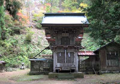 本殿は一間社流造で、建築は寛延三年(一七五○)作者は本殿と同じく末野忠兵衛である。各所に雲や天女・虎・牡丹・竜等の彫刻が施され、この時代の地方作としては彫刻が多く用いられた初期の作品であり、当時の様式を伝えている。』