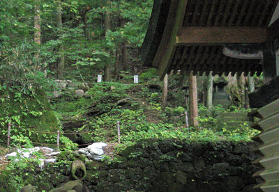この拝殿は東に向かって拝むように建てられていて、地図上では諏訪大社の真東は要石のある鹿島神宮で諏訪−鹿島レイラインですが、拝殿の向きは東南東で、その方角には諏訪大社の前宮があるものの、前宮の御神体は守屋山なので前宮に向かって拝むのもおかしいような・・・