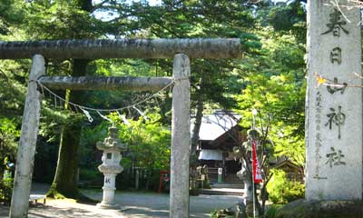 階段を登ると春日山神社の鳥居があり、境内が広がっていました。