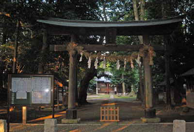 天正十九年(一五九一)十一月、徳川家康から社領十五石の御朱印を賜った格式のある神社である。当社の祭礼の中でも、毎年十二月八日に行われた鎮火祭は特に有名で、焚き終った炭火の上を裸足で渡り、無病息災及び火難がないよう祈願するものである。ただし、近年は事情によりこの行事は中断している。現社殿の裏側に旧社殿が保存されているが、これは桃山様式をもつ市内最古の建造物として大宮市指定文化財となっている。』