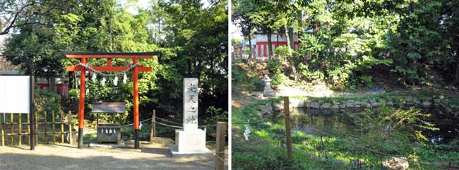 『 古来よりこの池には、龍神様がお住まいになられていると言い伝えられてきました。しかし、永い年月の間に風雨等により土砂が流れ込み、池が埋もれておりました。境内整備事業の一環として、平成11年より、古来の御神池に復元すべく土砂の搬出をしておりますと、池から湧き水が溢れ出て、龍のような雲が空を覆いました。その時に「天まで光り輝くような池」というご神託を受け、池の名を光天之池(みひかりのいけ)と名付けました。こちらの鳥居よりご参拝ください。社務所。』