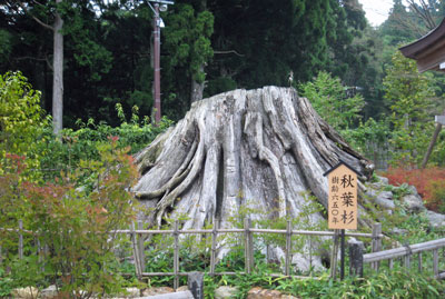 かなり大きな切り株で、参道の横にありました。神門を造った木の切り株だそうです。