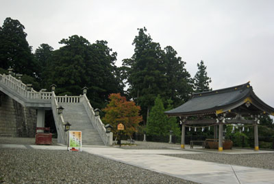 さらに階段を上って手水舎と社務所がある南側に辿り着きました。この階段の上に社殿があります。