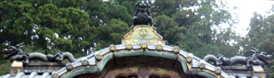 唐門の屋根には「昼の守りの鰭切れの龍」と「夜の守りの恙(つつが)」が飾られています。