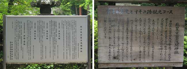 ここは富士スバルラインができて五合目まで自動車で行けるようになるまで賑わった山梨側の登山口であり、江戸時代には富士山を崇拝・参詣する富士講が生まれ大流行し、昔はこの金鳥居から登山口のある北口本宮冨士浅間神社まで宿坊が百軒近く並んでいたそうです。
