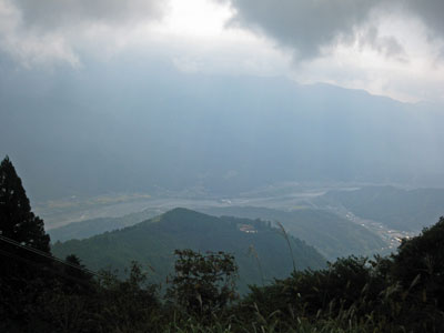 『 皆様は今、日本の地質構造を東西に二分する境界を目の前にしておられます。この境界は地質学上有名な糸魚川−静岡構造線で正面の早川渓谷の上流及び左手の支流春木川渓谷を通っています。(すぐ後の机の上の地図もご参照下さい)