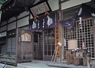 第40代天武天皇の御代、役行者小角当山(1000M、現・社地)の霊験なるを以て修験道場として開山、不思議にも昼夜連日鳴動す。以来当山を大嶽山鳴渡(なると)ヶ崎と呼び、第44代元正天皇養老元丁巳年(717年)3月18日奥宮より遷座の時も鳴動したと云う。