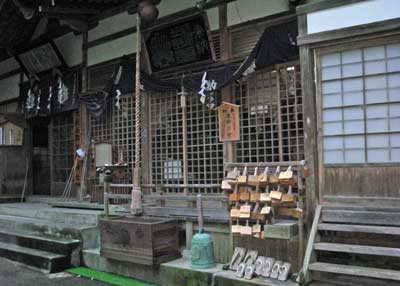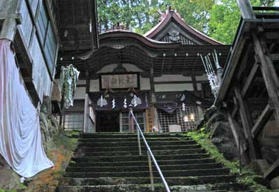 江戸初期大破に及ぶ事有り小祠となるが、元文5庚申年再建の為、羽黒派修験東叡山支配となり社殿残らず建立す。今の本殿は嘉永3年着工、明治10年竣工、他社殿神楽殿は同35年(流失昭和36年復興)・随神門同37年竣工、何れも甲府三日町の名医 喜多島宗甫氏の奉納。彫刻は都留市谷村の名匠 福田俊秀氏が当社に半生を篭もり手掛けた秀作。拝殿は同43年再建。明治6年村社に列せられ、昭和57年本殿が旧三富村文化財に指定。』