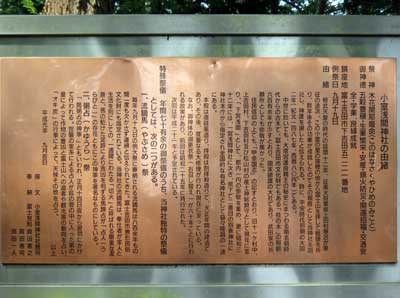 住民信仰の上でも、「甲斐国志」の記すとおり、旧十一ヶ村中、上吉田村、下吉田村及び松山村の産土神総鎮守として現在に至り、「下宮浅間」として、郡内一円の崇敬を集め、更に昭和32年には、一宮浅間神社に次ぎ、県下で二番目の別表神社に神社本庁から指定され全国的な有名神社として益々隆昌の一途にある。』