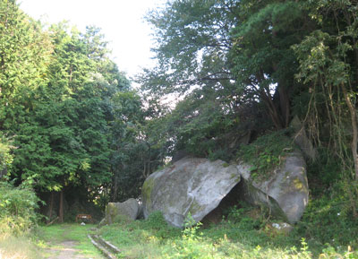 小さな山なので山の周囲を散策してみると、山の裏側で真っ二つに割れたような巨石を発見。