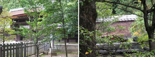 中門と本殿の屋根。武田菱が見えますね。