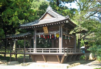 『 社伝によると別名を「武田信玄出陣の神楽」とも言い、出陣に際し勝利を祈願して奉納した神楽であるという。24種の舞があるが、いずれも天の岩戸の故事を中心とした古事記神話の世界を表現した、いわゆる出雲神楽の系統に属するものである。春の例大祭に昼夜2日間にわたって執行されるが、24種の舞の順序は古来変わることがなく、「四方舞」に始まり、正午に「天の岩戸」が開かれ、最後に祭神の「大山祇命の舞」で舞い納めることになっている。